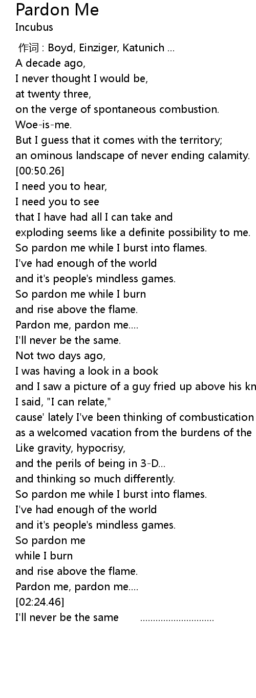 | [01:43.70] | cause' lately I' ve been thinking of combustication |