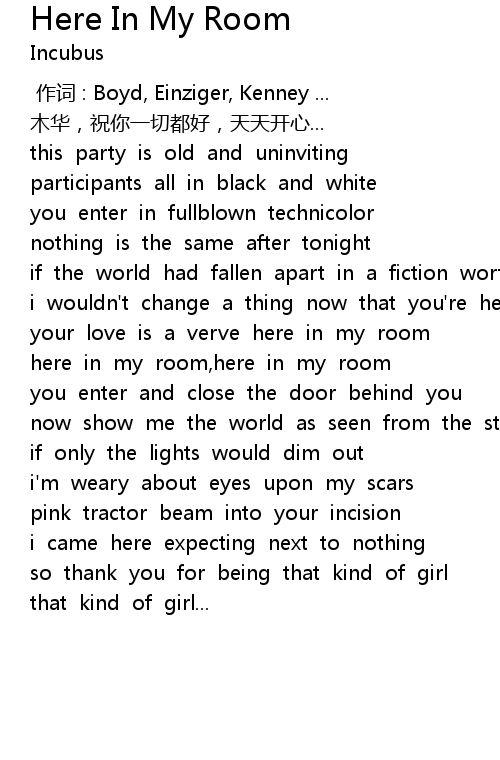 | [00:00.00] | 作词 : Boyd, Einziger, Kenney ... |