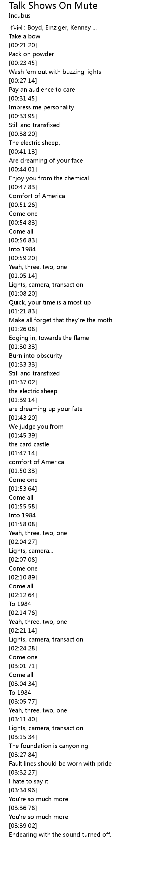 | [00:00.00] | zuò cí : Boyd, Einziger, Kenney ... |