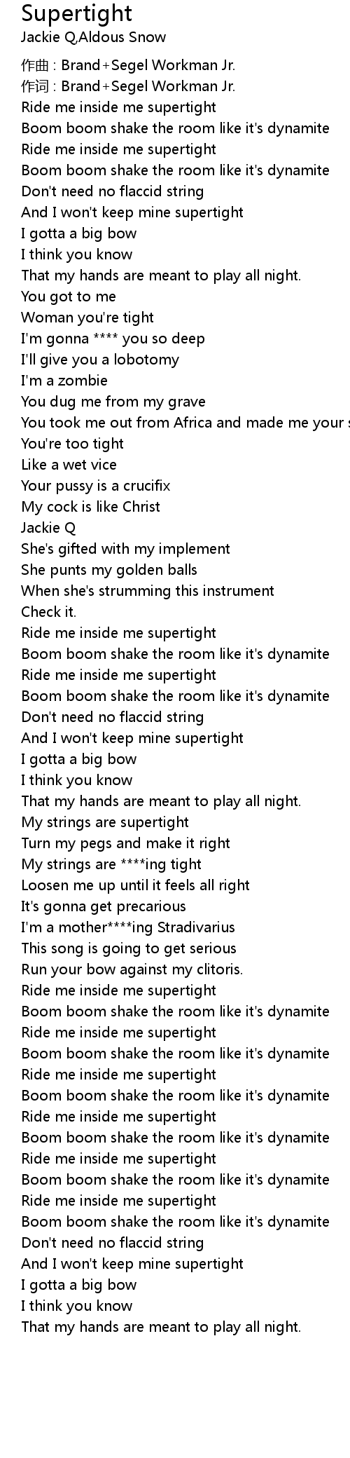 | 作词 : Brand+Segel Workman Jr. | |