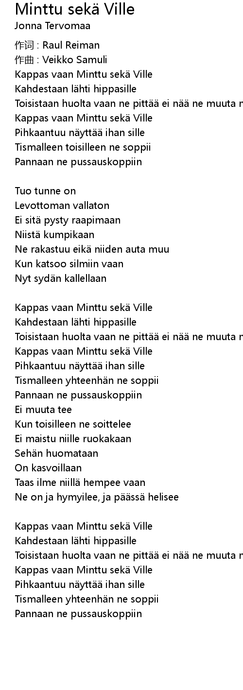 | Song | Minttu sekä Ville |