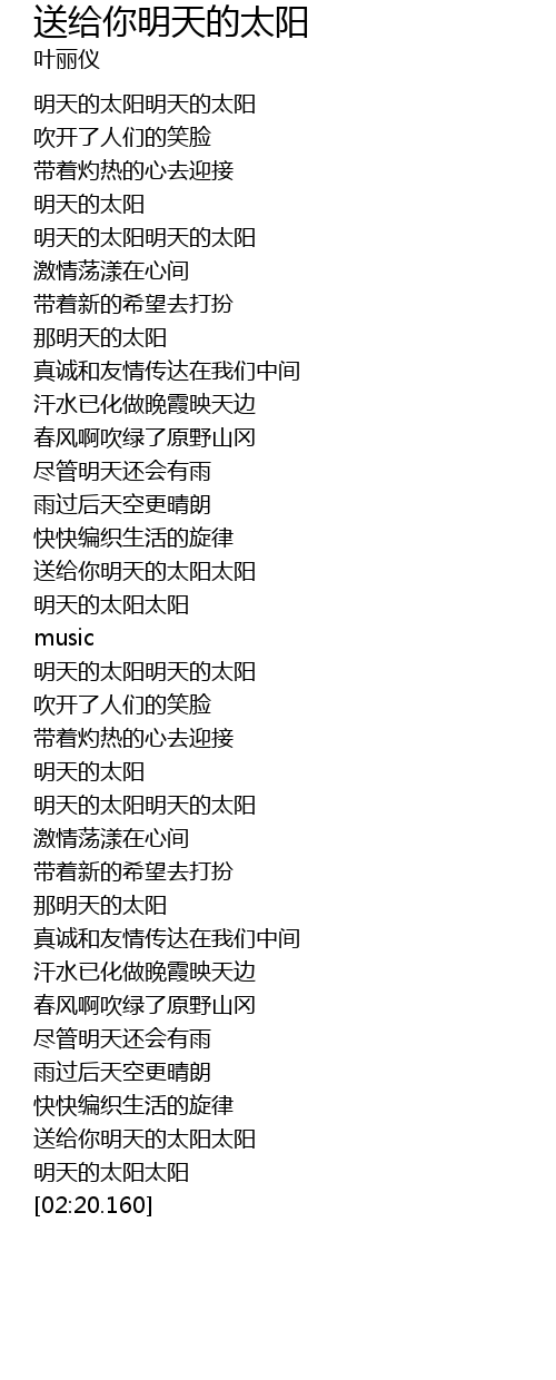 | [02:11.750] | 送给你明天的太阳太阳 |