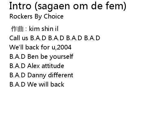 | [00:29.60] | Call us B. A. D B. A. D B. A. D B. A. D |