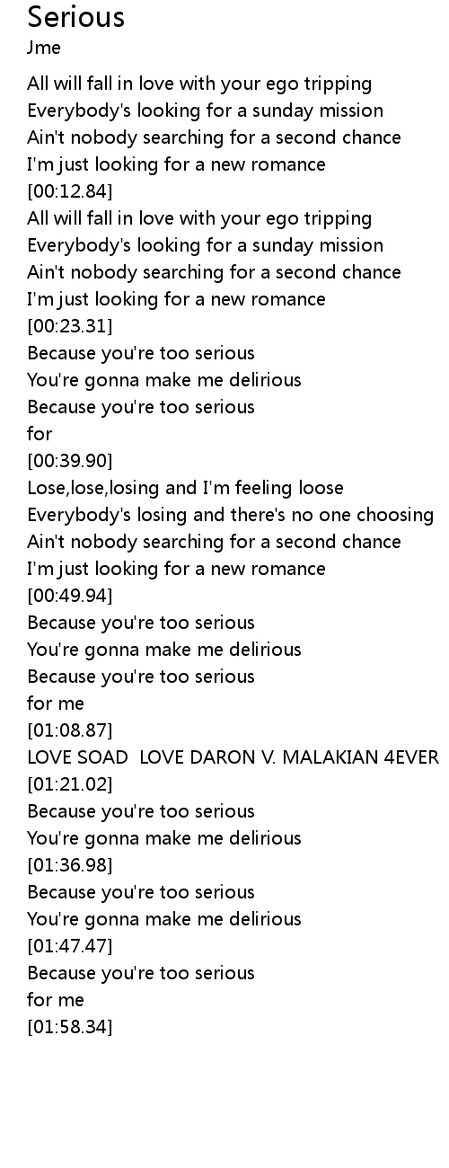 | [00:33.26] | Because you're too serious |