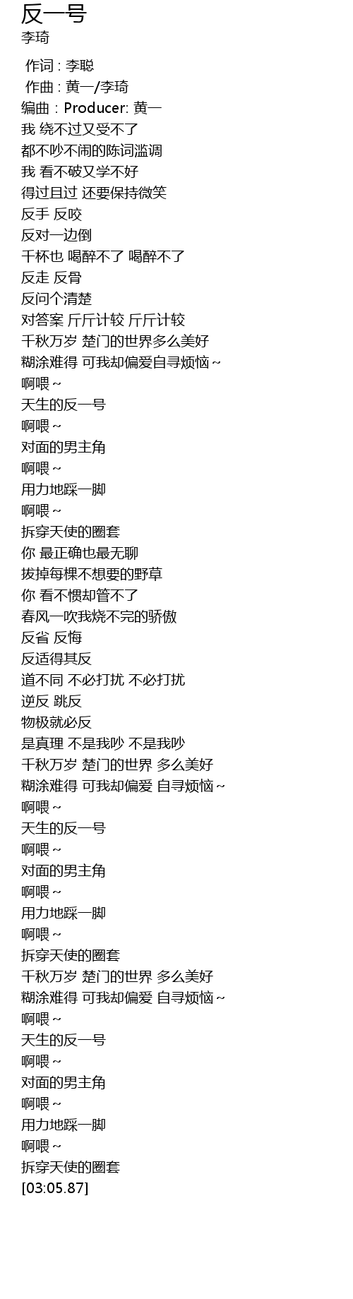 | [01:01.32] | 天生的反一号 |