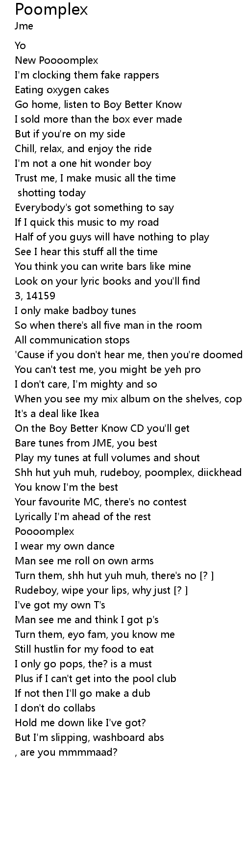 | Shh hut yuh muh, rudeboy, poomplex, diickhead | |
