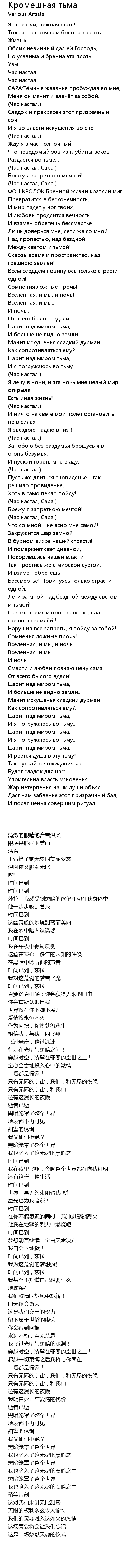 Кромешная тьма  Lyrics