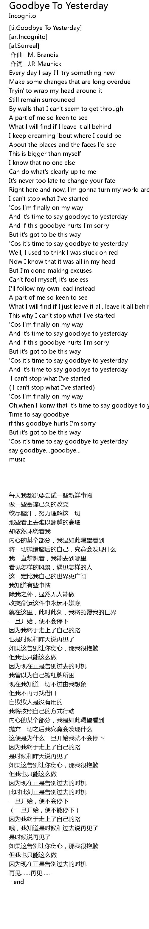 | [01:33.01] | And it' s time to say goodbye to yesterday |