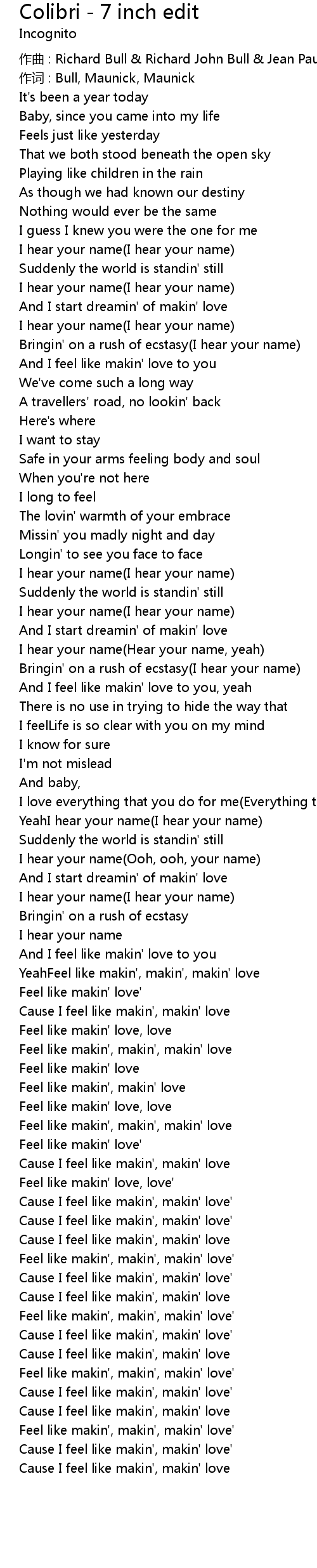 | Feel like makin', makin', makin' love' | |