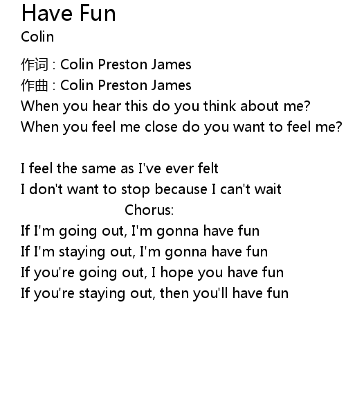 | If I' m staying out, I' m gonna have fun | |