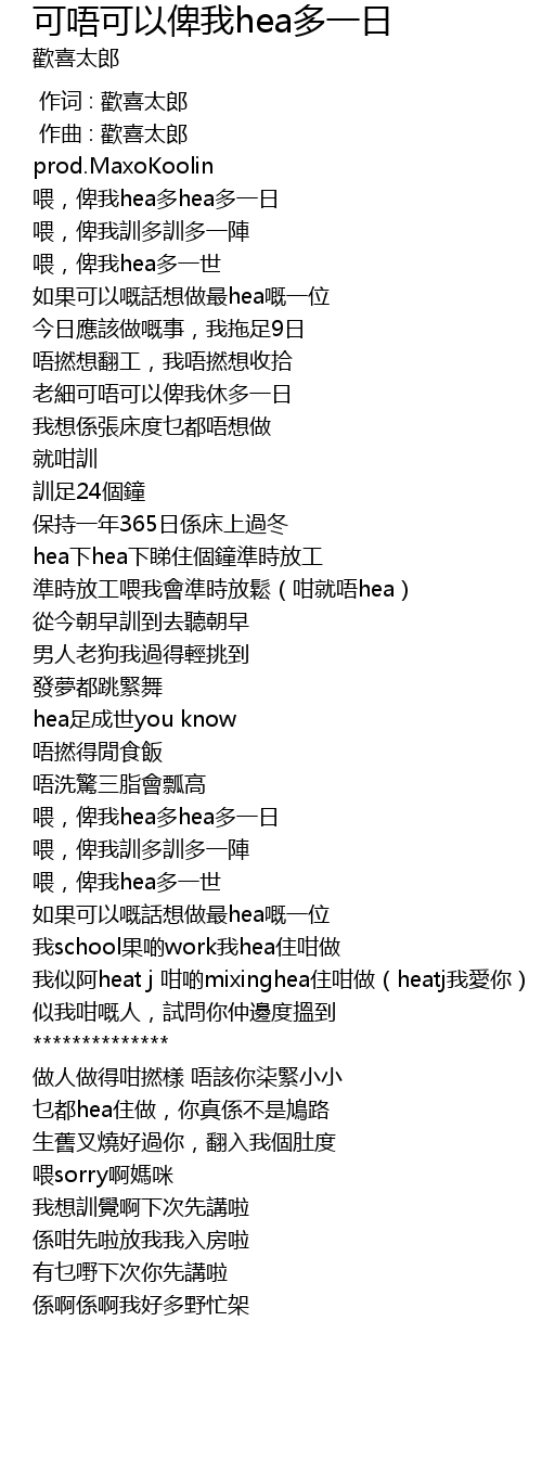 | Album | 今日應該做嘅事,我拖足9日 唔撚想翻工,我唔撚想收拾 老細可唔可以俾我休多一日 |