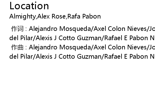 | [00:00.000] | 作词 : Alejandro Mosqueda/Axel Colon Nieves/Jose Polanco/Eduardo del Pilar/Alexis J Cotto Guzman/Rafael E Pabon Navedo |