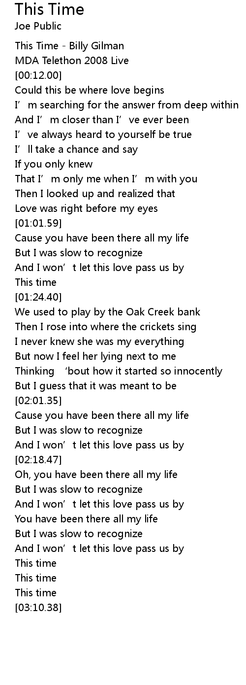 | [00:00.00] | This Time - Billy Gilman |