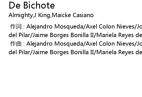 | [00:00.000] | 作词 : Alejandro Mosqueda/Axel Colon Nieves/Jose Polanco/Eduardo del Pilar/Jaime Borges Bonilla II/Mariela Reyes de la Rosa/Edgar Morales |