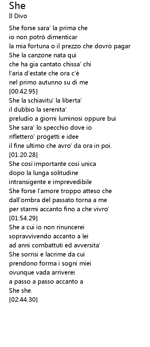 | [01:36.25] | She forse l'amore troppo atteso che |