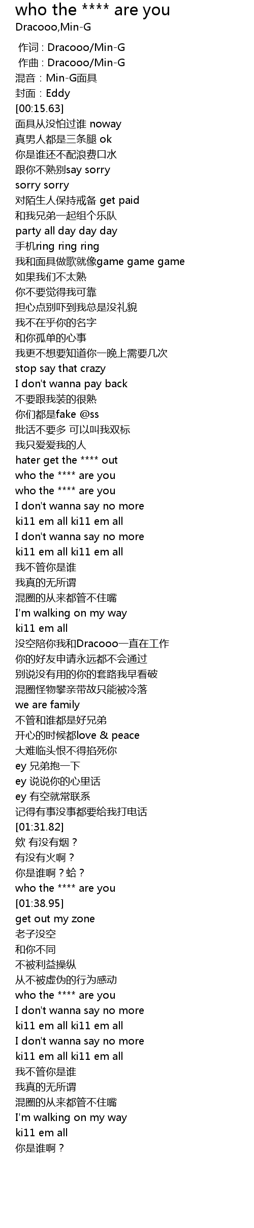 | [00:00.000] | zuo ci : Dracooo MinG |