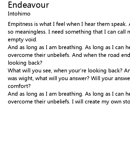 And as long as I am breathing. As long as I can hear my heart beat. I'll overcome their unbeliefs. And when the road ends what will you find when you're looking back? |