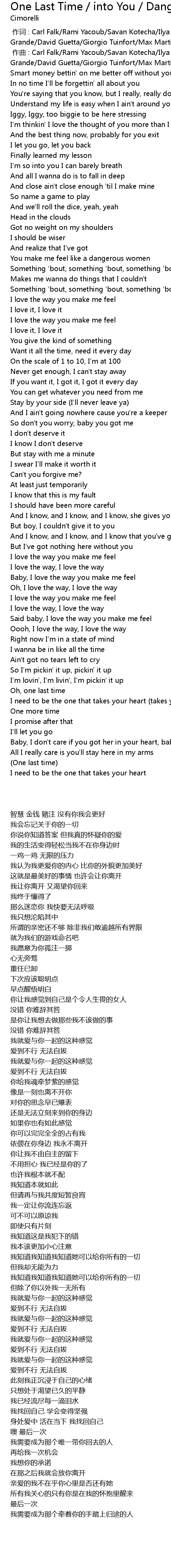 | [00:00.000] | 作词 : Carl Falk/Rami Yacoub/Savan Kotecha/Ilya Salmanzadeh/Ariana Grande/David Guetta/Giorgio Tuinfort/Max Martin/Alexander Kronlund |