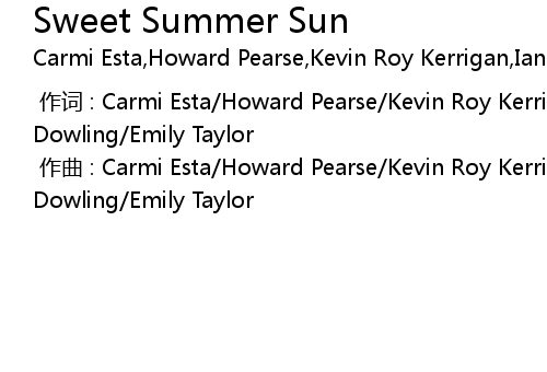 | [00:00.000] | 作词 : Carmi Esta/Howard Pearse/Kevin Roy Kerrigan/Ian Dowling/Emily Taylor |