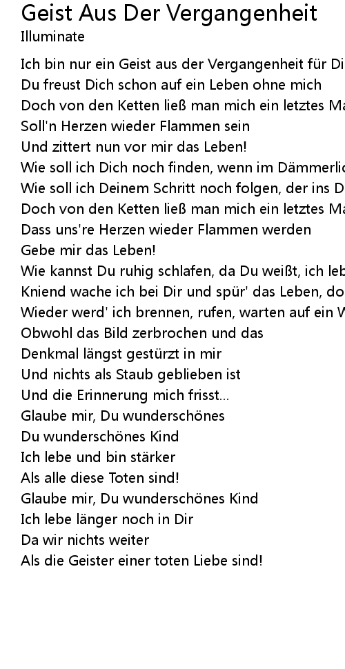 | Ich bin nur ein Geist aus der Vergangenheit fü r Dich | |