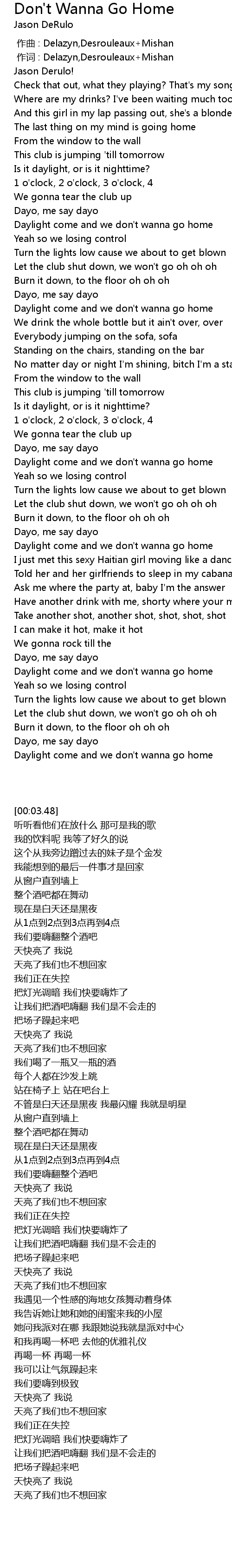 | [00:47.52] | Daylight come and we don't wanna go home |