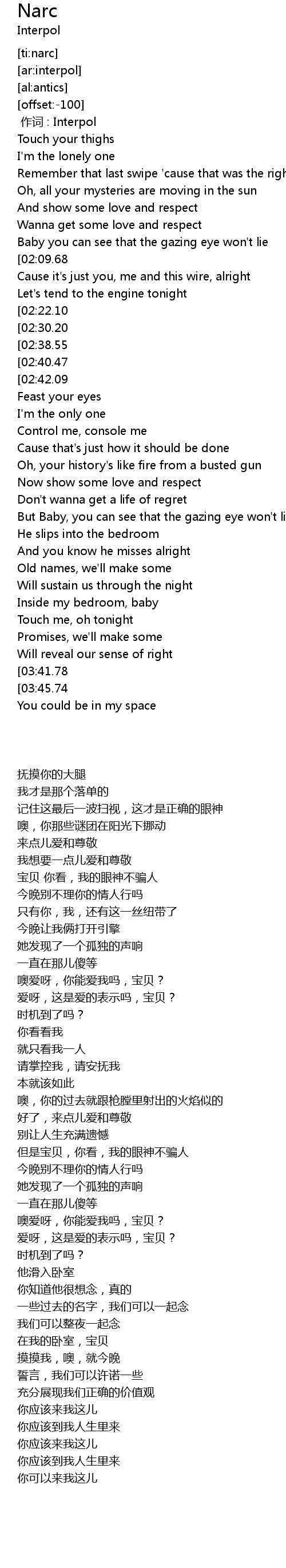 | [00:39.95] | Baby you can see that the gazing eye won't lie |