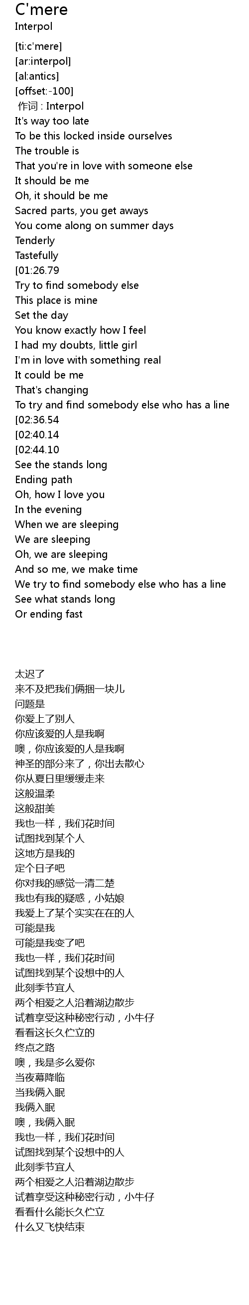 | [01:45.72][02:40.14] | Two lovers walk on lakeside mile |