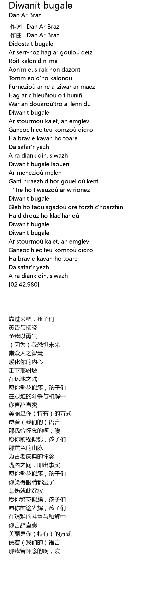 | [00:00.000] | zuò cí : Dan Ar Braz |