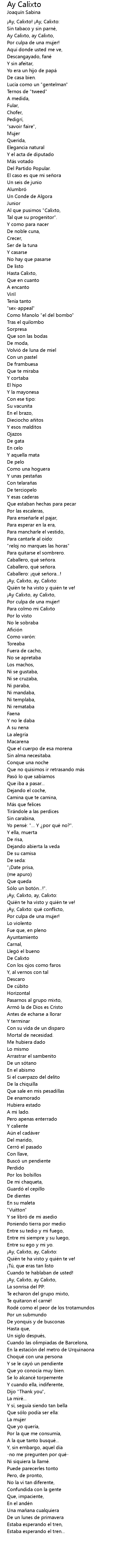 | Ay, Calixto, ay, Calixto: | |