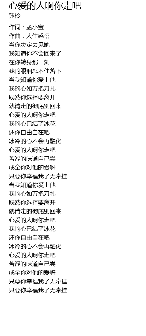 | [01:34.55] | xīn ài de rén a nǐ zǒu ba |