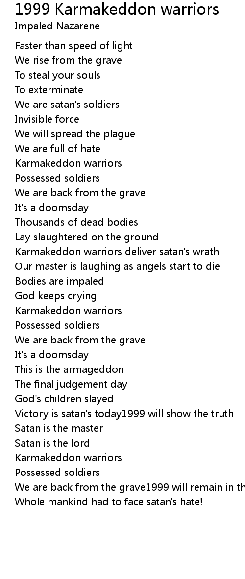 Karmakeddon warriors deliver satan's wrath |