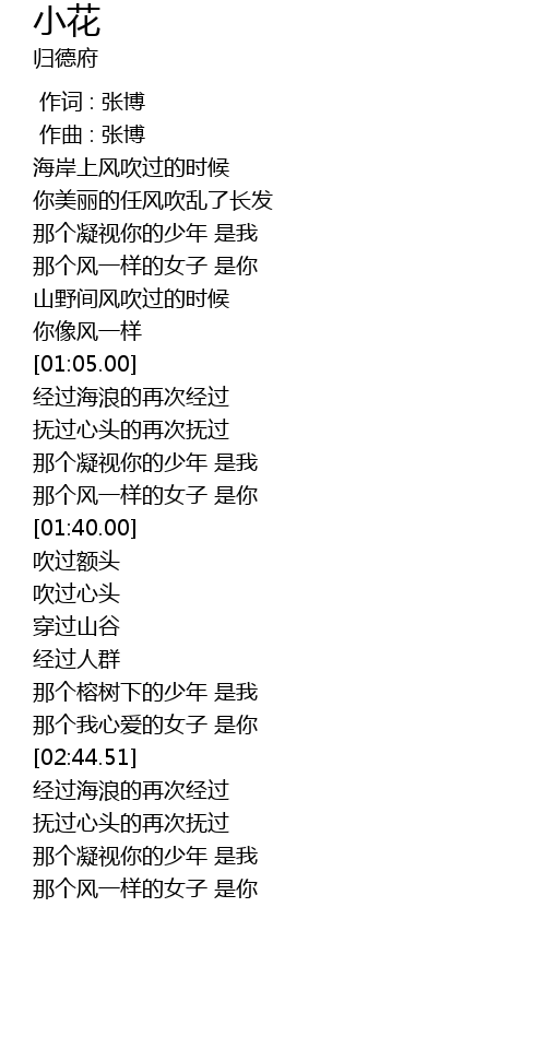 | [00:01.000] | zuò qǔ : zhāng bó |