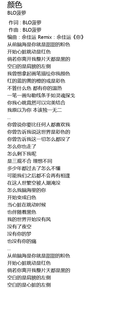 | [00:00.000] | 作词 : BLO菠萝 |