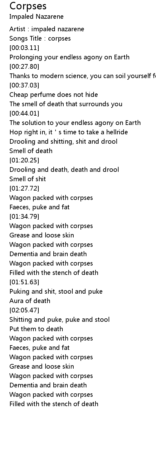 | [02:31.84] | Wagon packed with corpses |