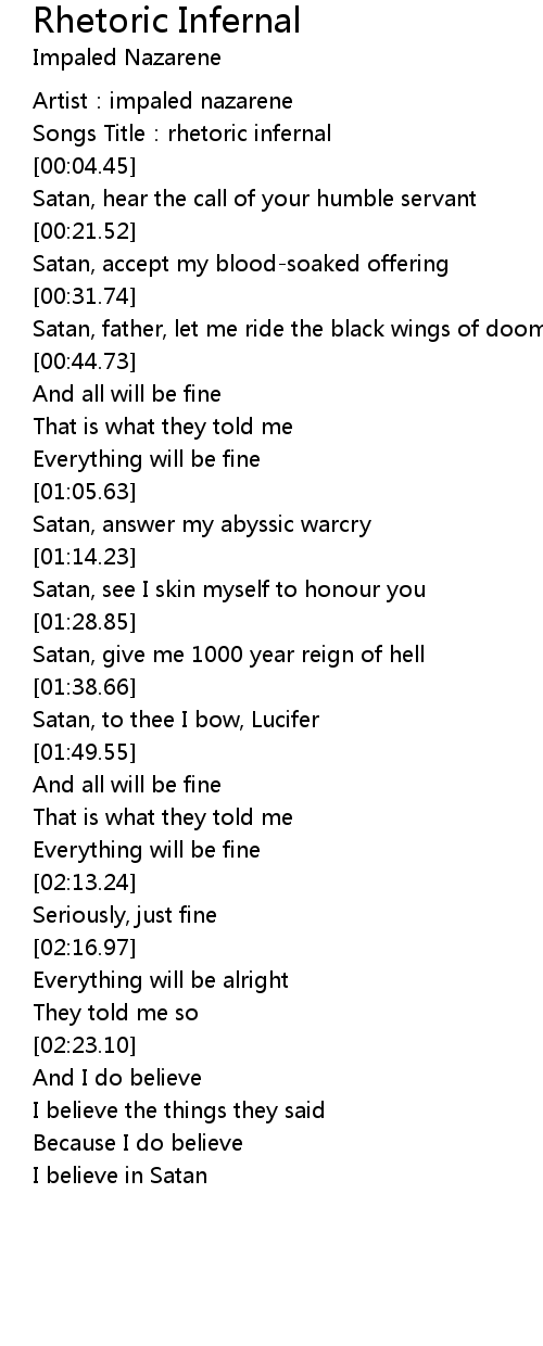 | [00:22.82] | Satan, accept my bloodsoaked offering |