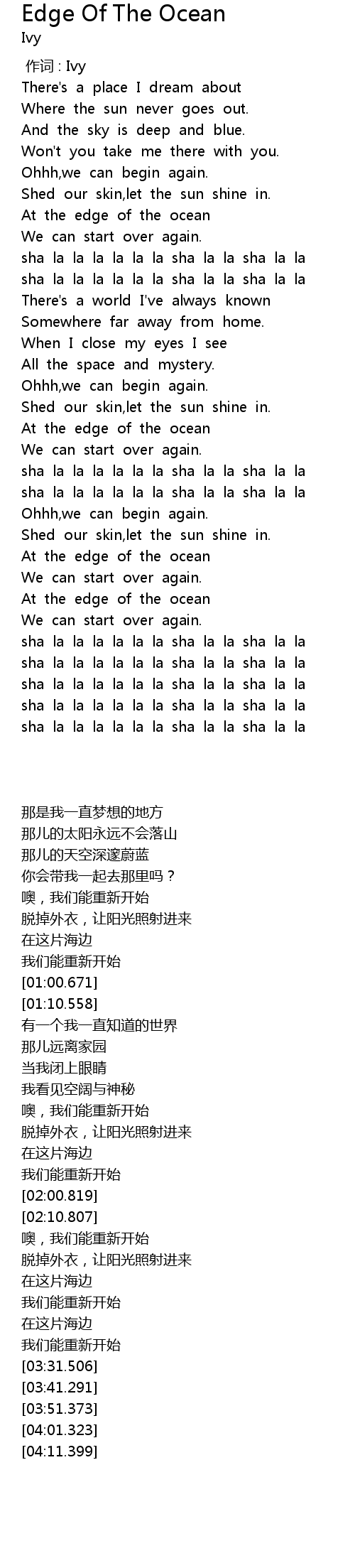 | [00:51.38] | At the edge of the ocean |