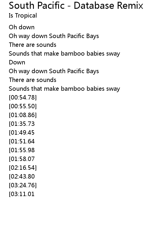 Oh way down South Pacific Bays |