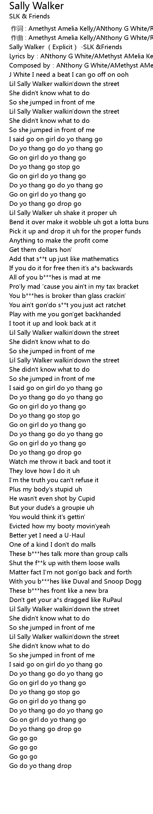 | [00:00.243] | Sally Walker (Explicit) -SLK &Friends |