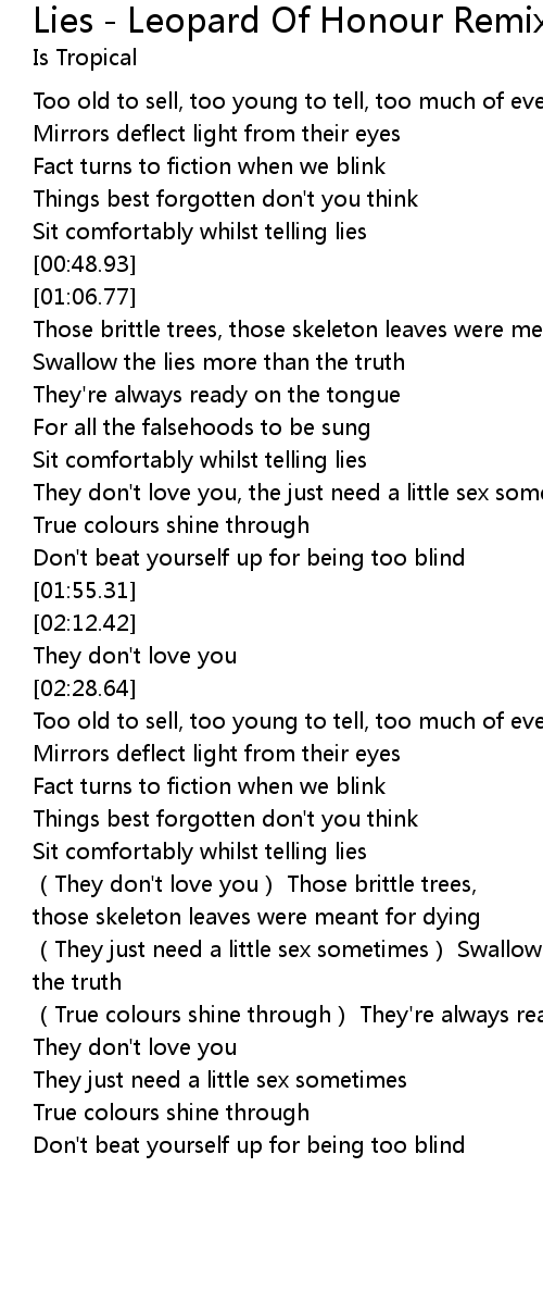 | [02:58.12] | (They just need a little sex sometimes) Swallow the lies more than the truth |