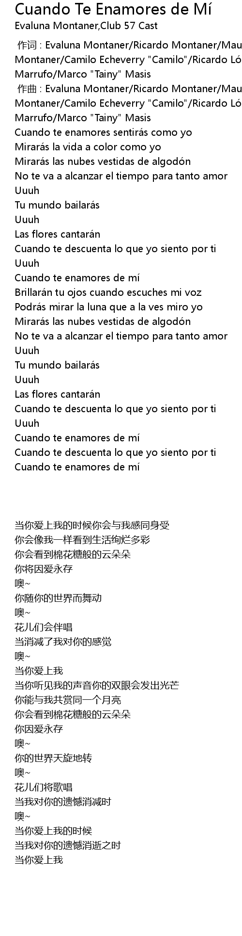 | [00:14.000] | Cuando te enamores sentira s como yo |
