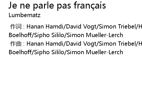 | [00:00.000] | 作词 : Hanan Hamdi/David Vogt/Simon Triebel/Hannes Buescher/Philip Boelhoff/Sipho Sililo/Simon Mueller-Lerch |