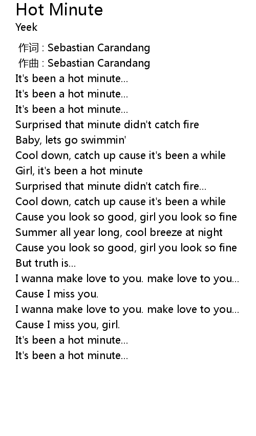 | [00:32.28] | Cool down, catch up cause it's been a while |