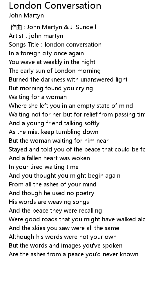 | [00:01.47] | Songs Title: london conversation |