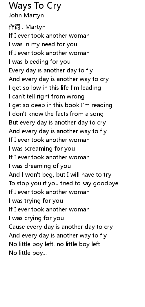 | And every day is another way to cry. | |