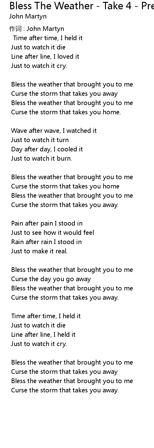 | Song | Bless The Weather - Take 4 - Previously Unreleased |