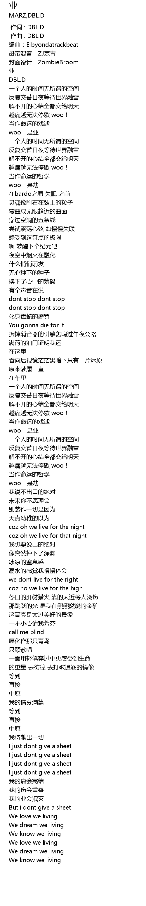| [00:00.000] | 作词 : DBL.D |