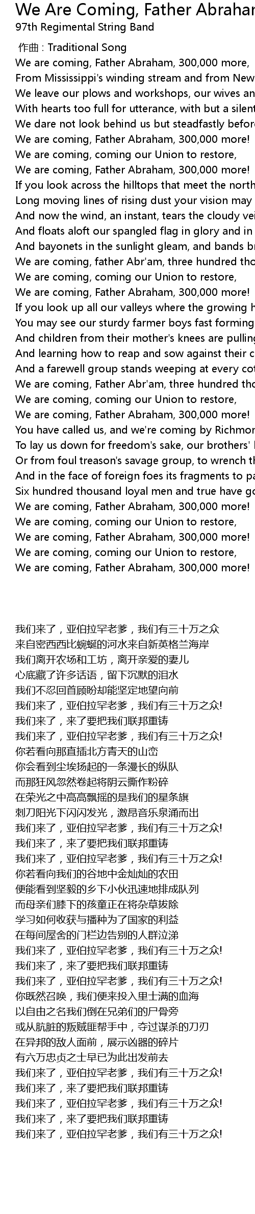 | [00:36.408] | We are coming, Father Abraham, 300, 000 more! |