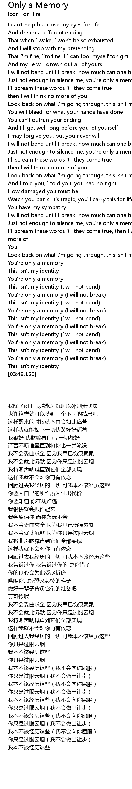 You're only a memory (I will not break) |