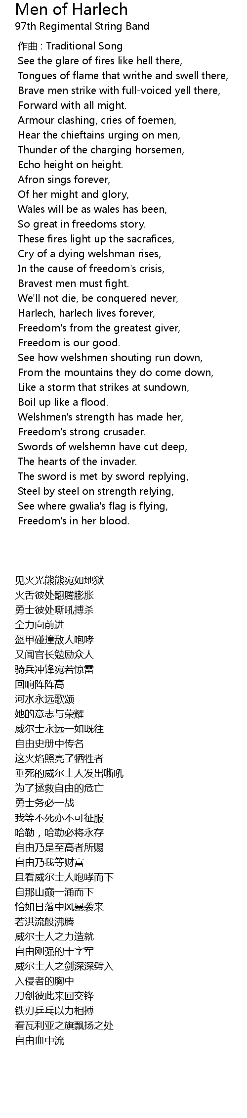 | [02:34.904] | See where gwalia' s flag is flying, |