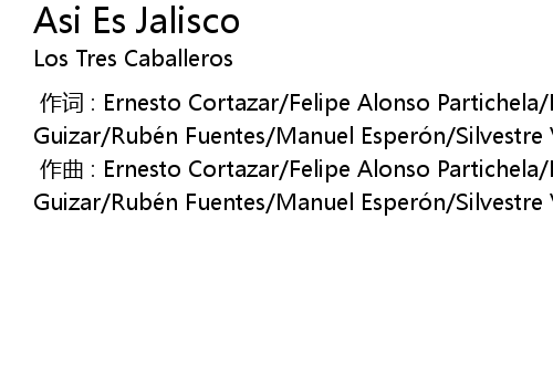 | [00:00.000] | 作曲 : Ernesto Cortazar/Felipe Alonso Partichela/Pepe Guizar/Rubén Fuentes/Manuel Esperón/Silvestre Vargas |